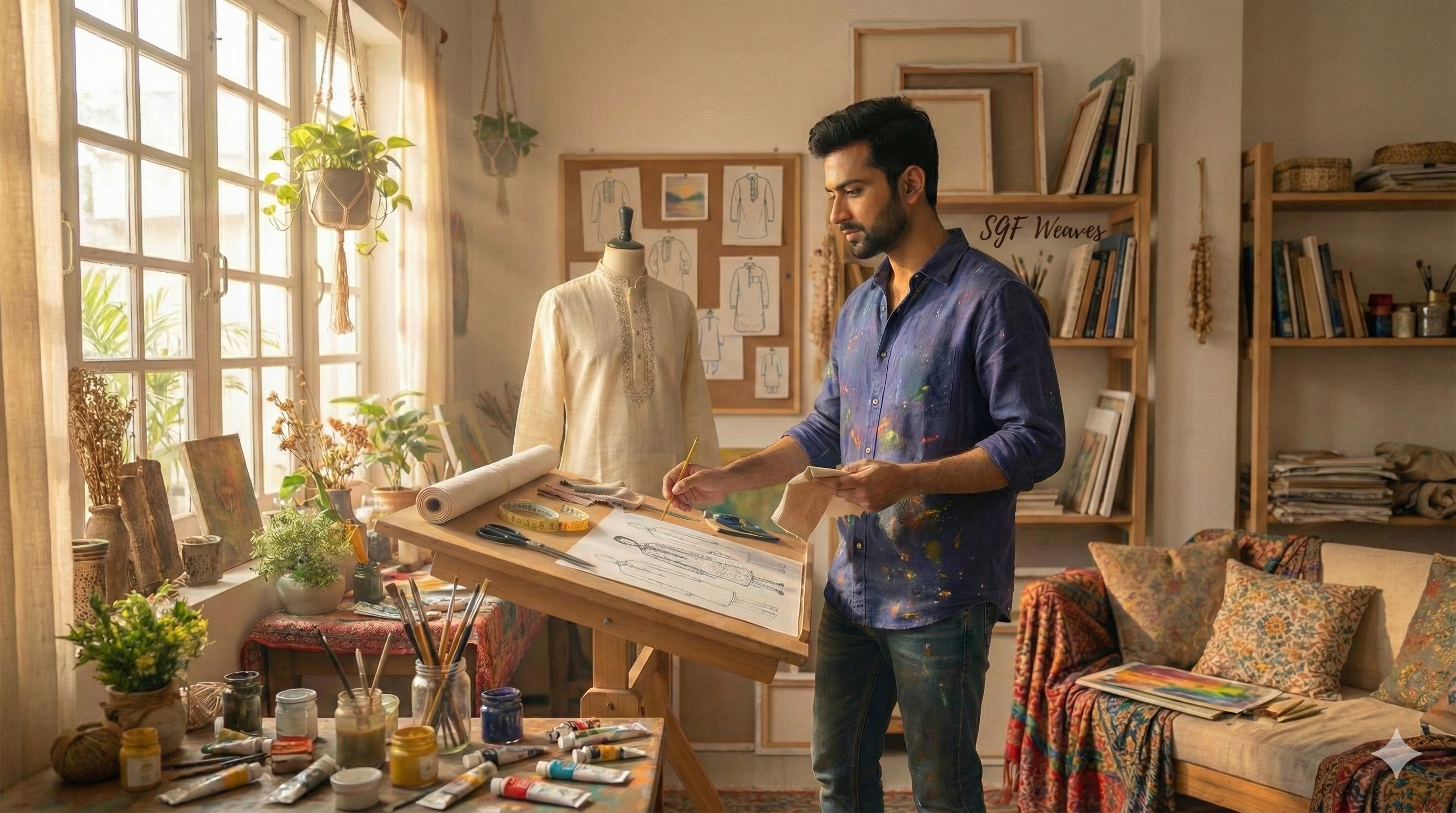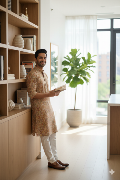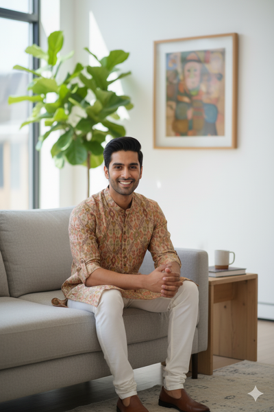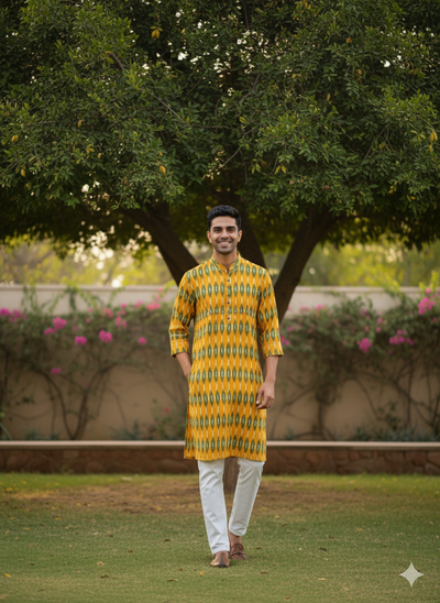 Ikat Kurta | Mustard & Mehendi Harmony