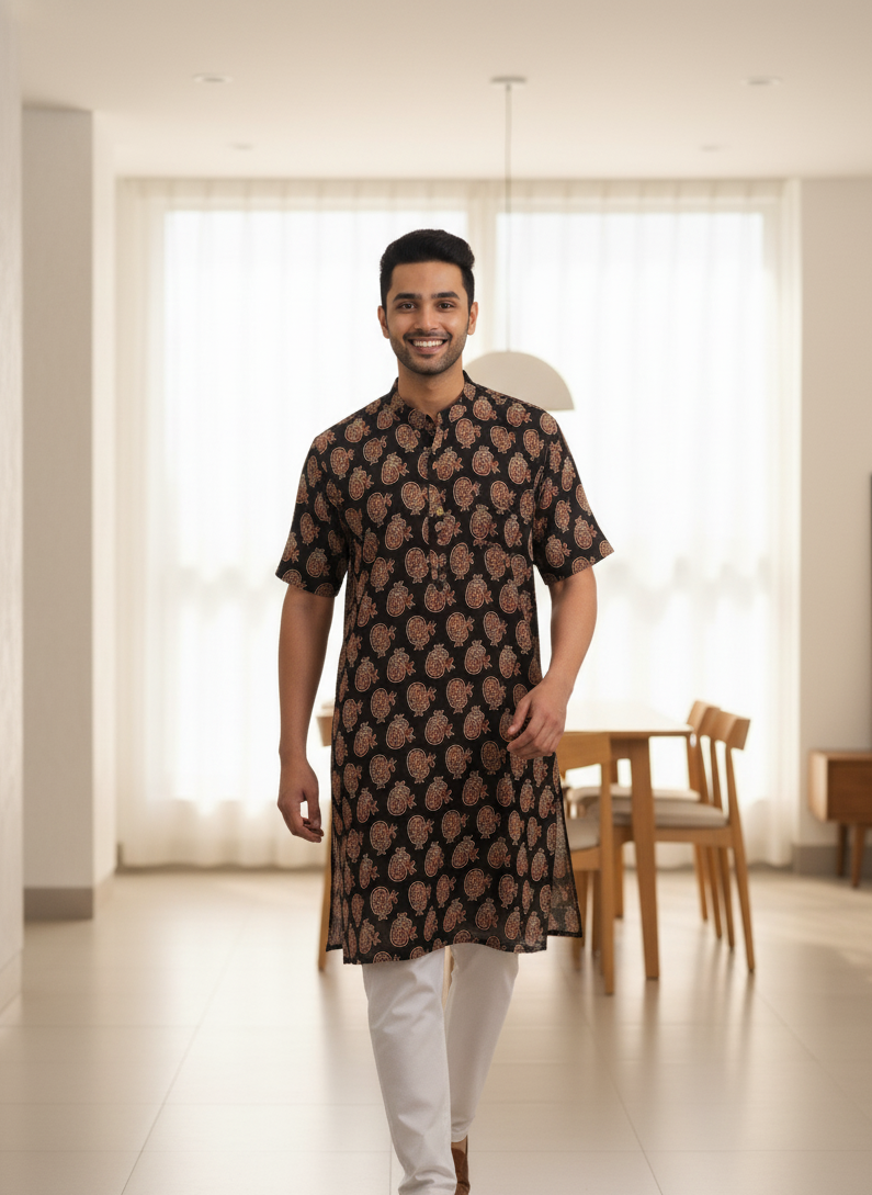 Sold outEbony Ajrakh Block Print Kurta
