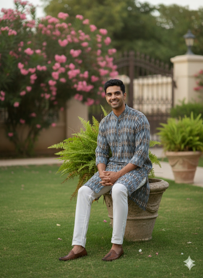 Ikat Kurta | Sage & Ivory Harmony
