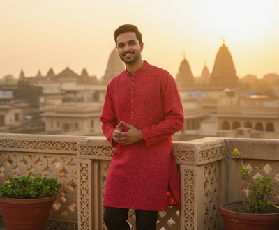Sold outAjrakh Heritage Kurta | Red Edition