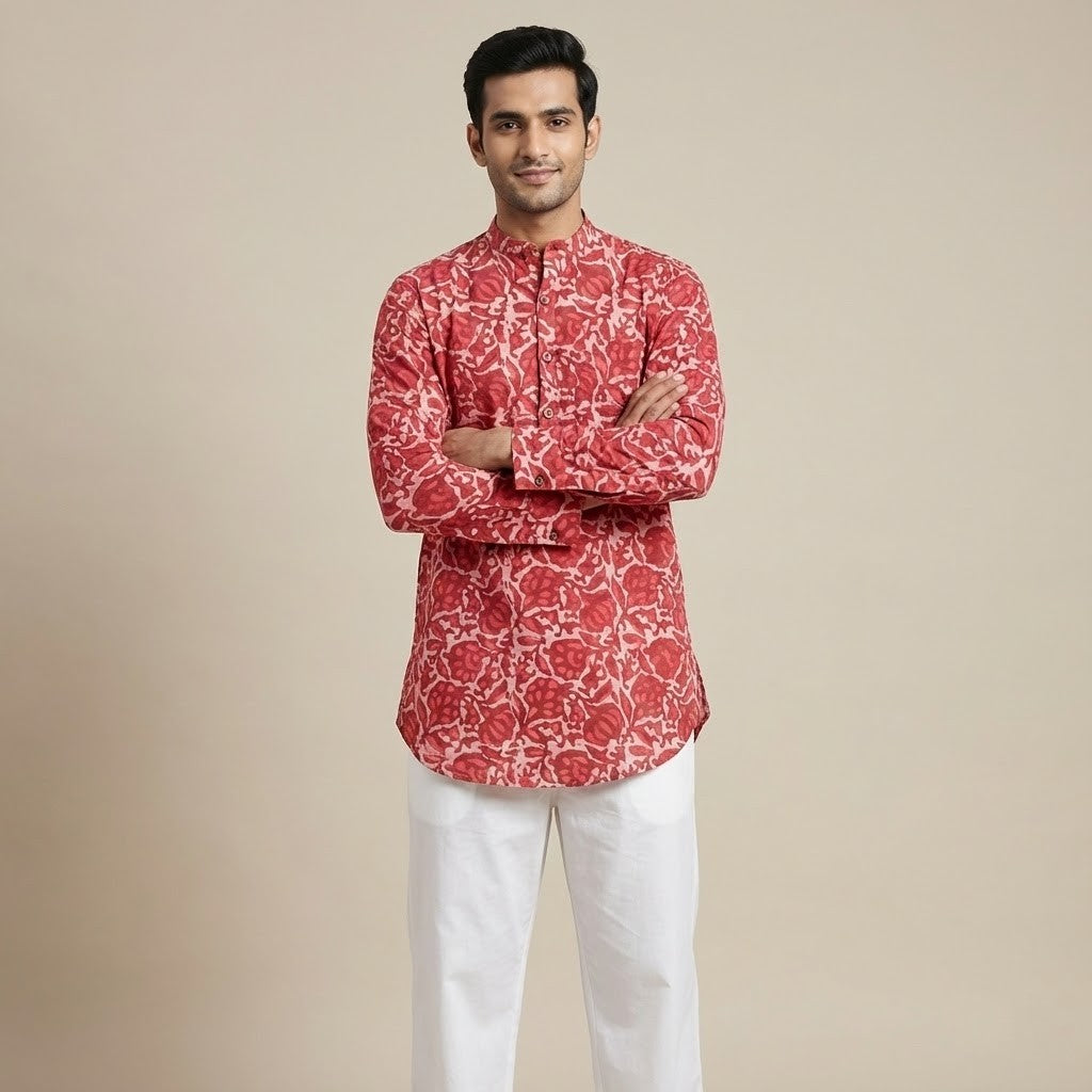 When fashioned into men's kurtas, Dabu Bagru infuses the garment with rustic elegance and historical charm, making it suitable for daily wear or festive occasions.