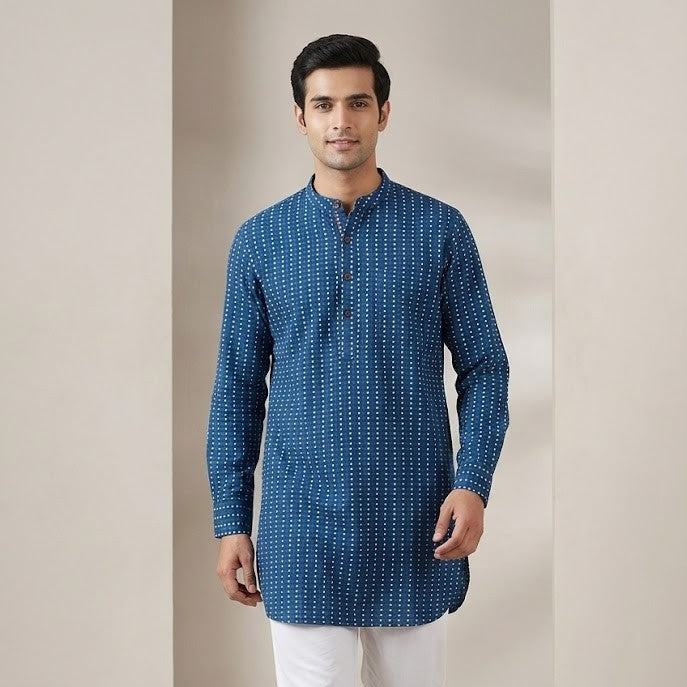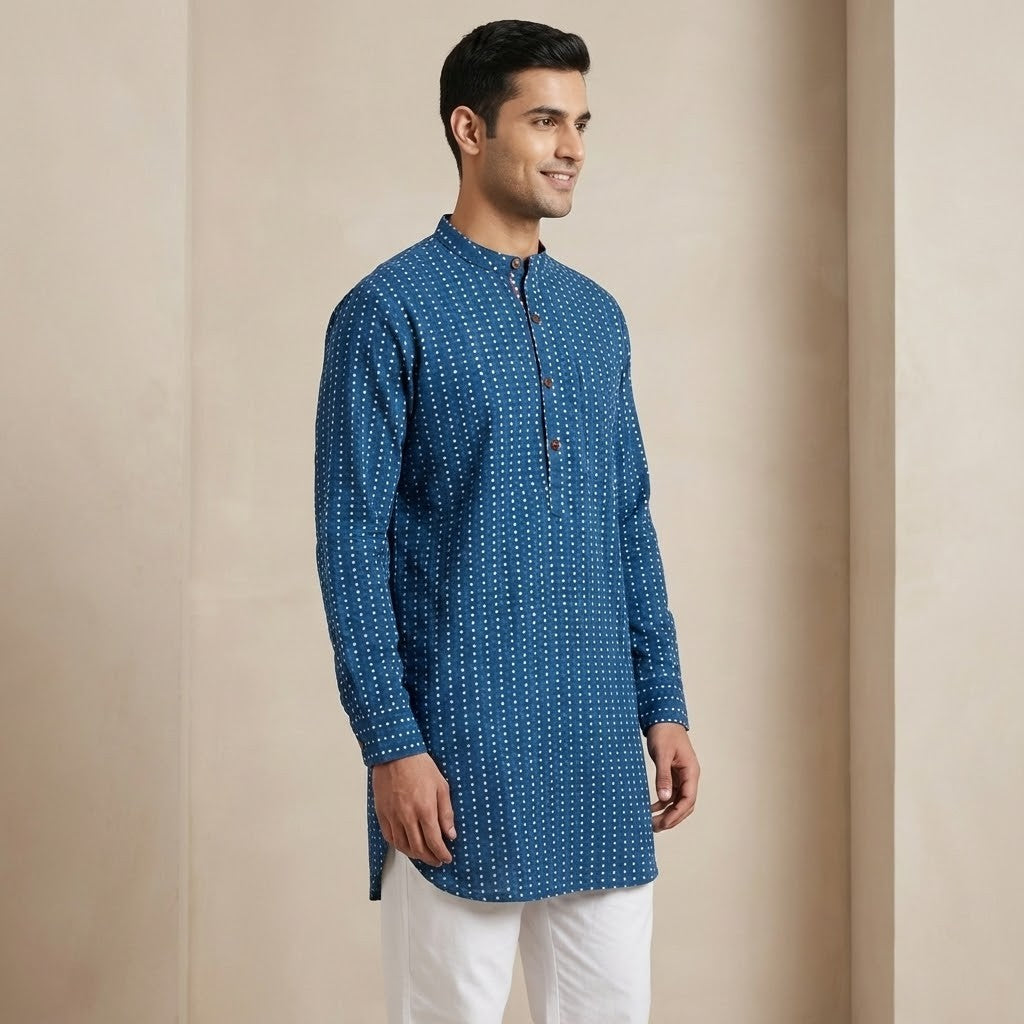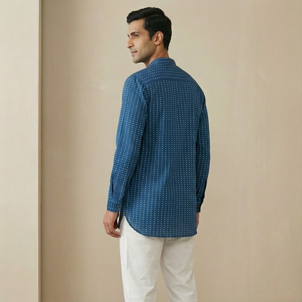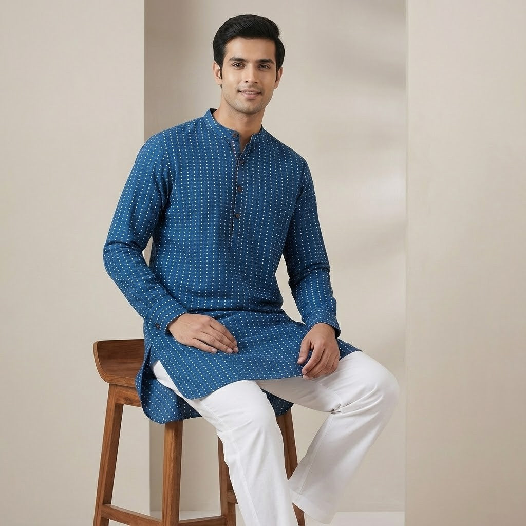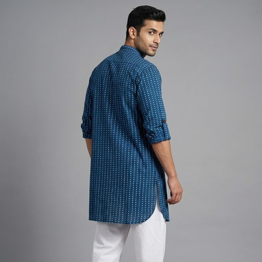 When fashioned into men's kurtas, Dabu Bagru infuses the garment with rustic elegance and historical charm, making it suitable for daily wear or festive occasions.