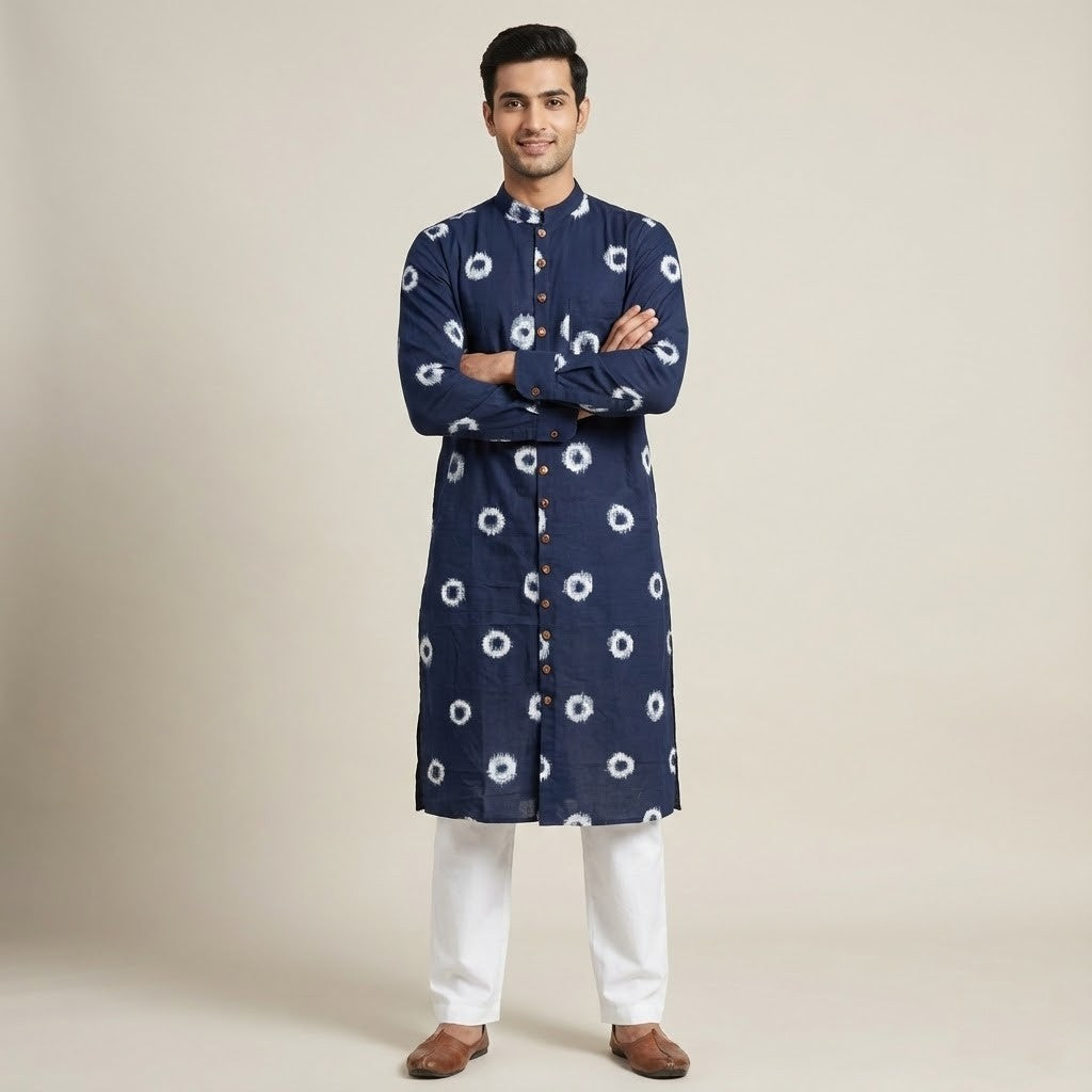 When tailored into a men's kurta, Ikat brings a refined elegance and subtle artistry, perfect for both everyday comfort and festive sophistication.